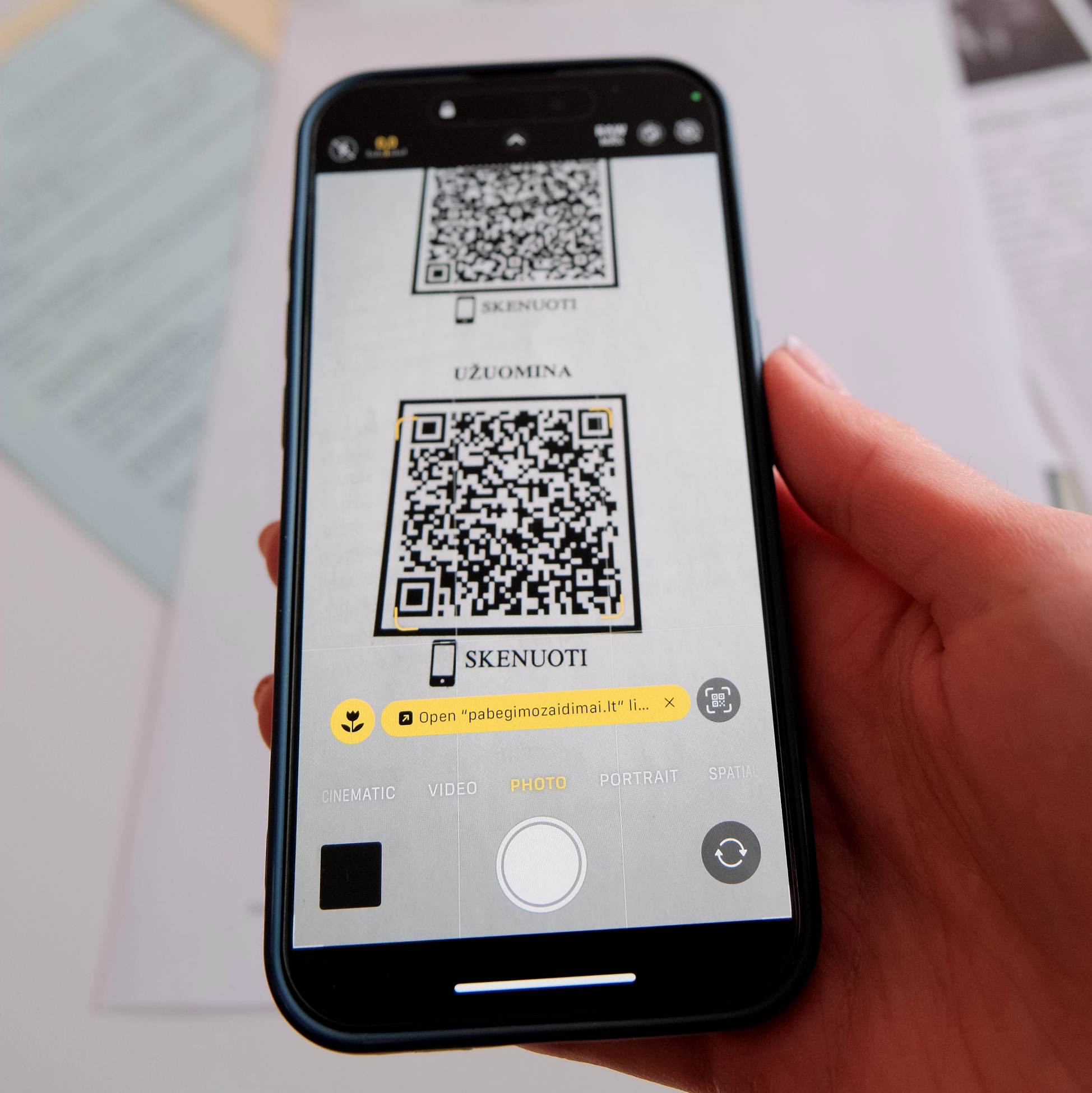 Žaidimas susideda iš 3–4 klausimų. Telefonu nuskenuokite QR kodus, atsakykite į klausimus ir atskleiskite, kas įvykdė nusikaltimą.